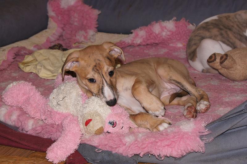 Po trzech tygodniach do domu wróciła Mojka, a wraz z nią jej córeczka Whiteheads SILVER GIRL -Foczka ( takie imię dostała po urodzeniu i chyba tak już zostanie). Malutka zamieszka z nami :). Teraz mam dwa szczeniaki, bo choć Mojka kalendarzowo ma prawie trzy lata, to przy córce zachowuje się jak rówieśnica ;).