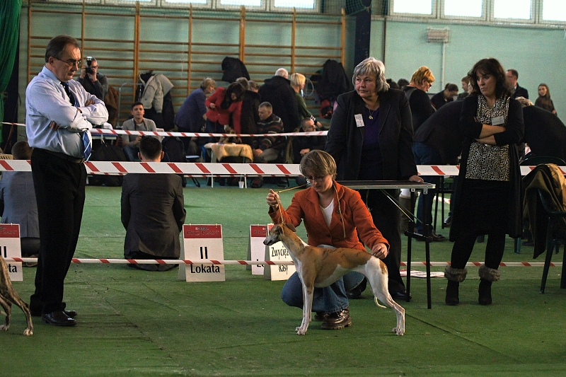 Potem szybka zmiana psów (szybka jak pit stop na wymianę opon w Formule 1 ;)) i na ringu w klasie otwartej zaprezentowała się Fonia (Whiteheads SILVER GIRL). Fonia pomimo nienajlepszego humoru (może była na mnie obrażona, że zniknęlam Jej z oczu z Talią ;)) ), wybiegała lokatę 1/2 z ocena doskonałą oraz CWC.